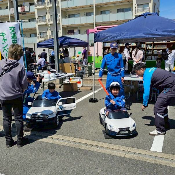 This event was held as a joint initiative between the “Ibaraki Traffic Safety Convention,” organized by Ibaraki City, the Ibaraki Police Station, and the Ibaraki Traffic Safety Association, and the “Traffic Safety Festival,” organized by the Ibaraki Driving School. On the day of the event, numerous practical traffic safety programs were conducted, including a “Bicycle Safety Class” led by the Traffic Safety Education Unit of the Traffic General Affairs Division at the Prefectural Police Headquarters, as well as a “Motorcycle Demonstration Ride and Photo Session” by the Traffic Patrol Unit.
